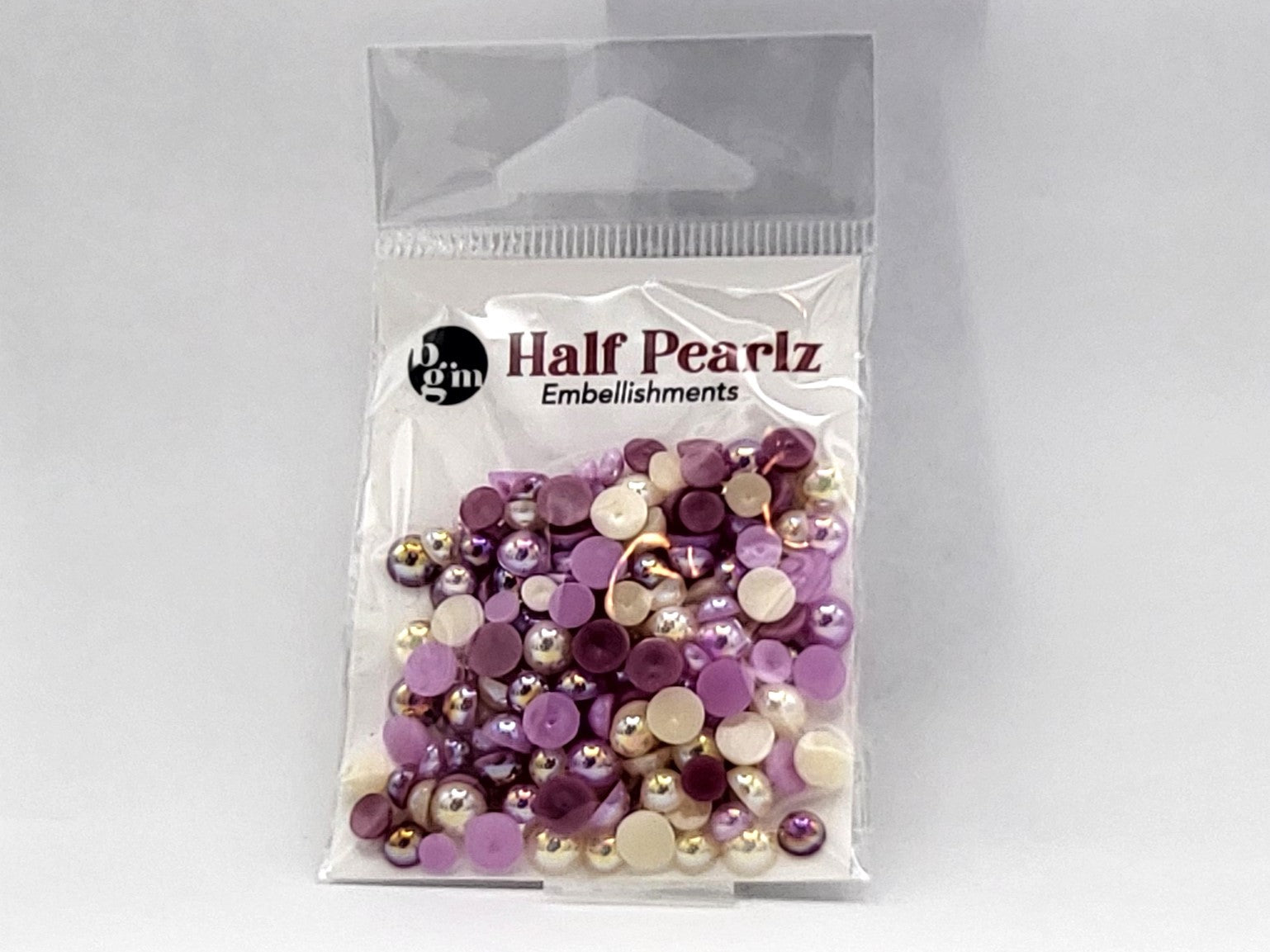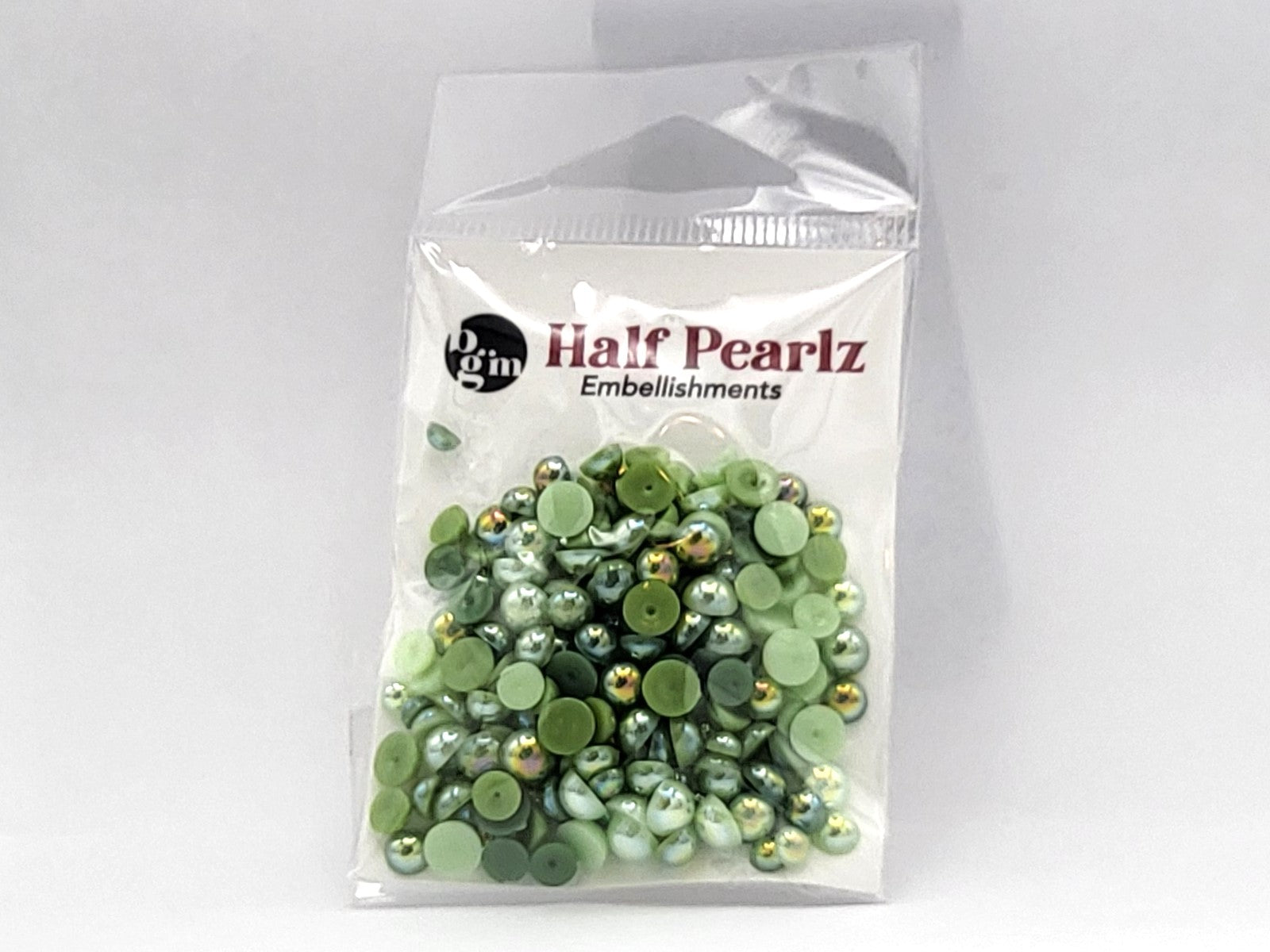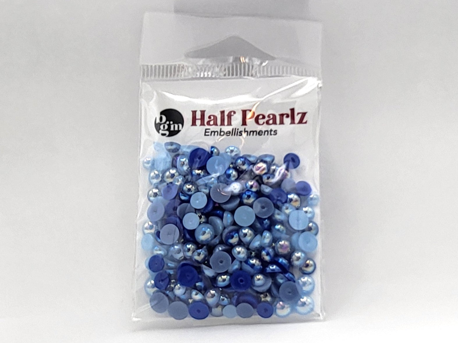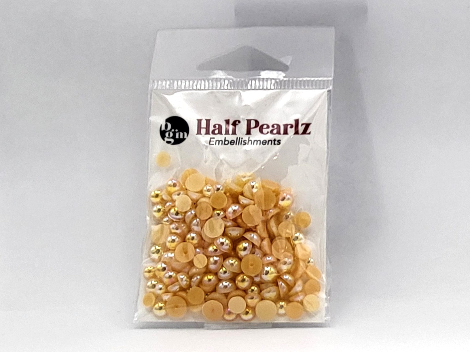 Buttons Galore and More Flat Back Half Round Pearls in an iridescent AB (Aurora Borealis) finish with a mix of three sizes in 4mm, 5mm, and 6mm. These craft embellishments are flat on the back and have a smooth round top. Add to your cards, scrapbooks, and more with a touch of glue to give your project a little dimensional pizzazz.
