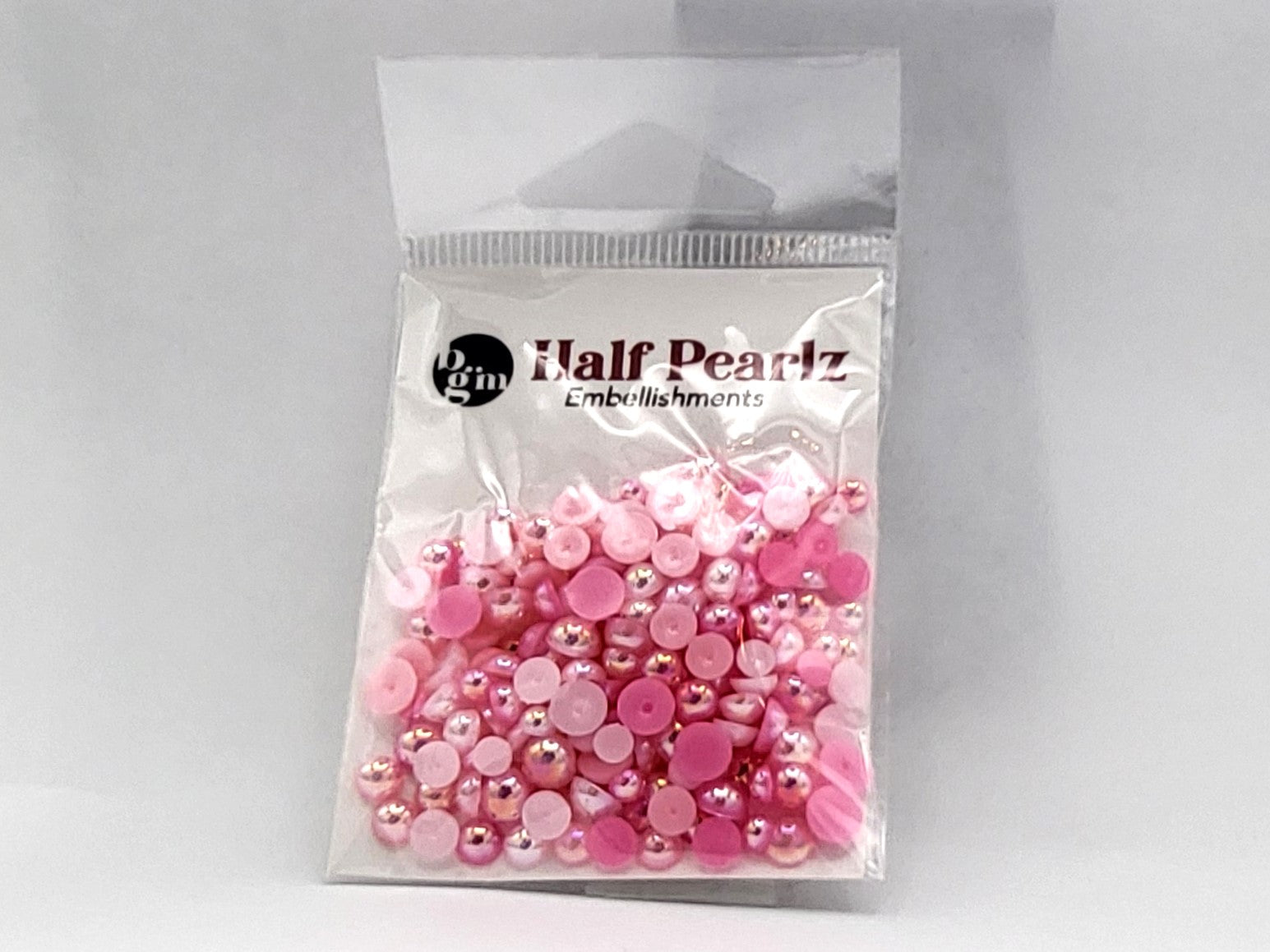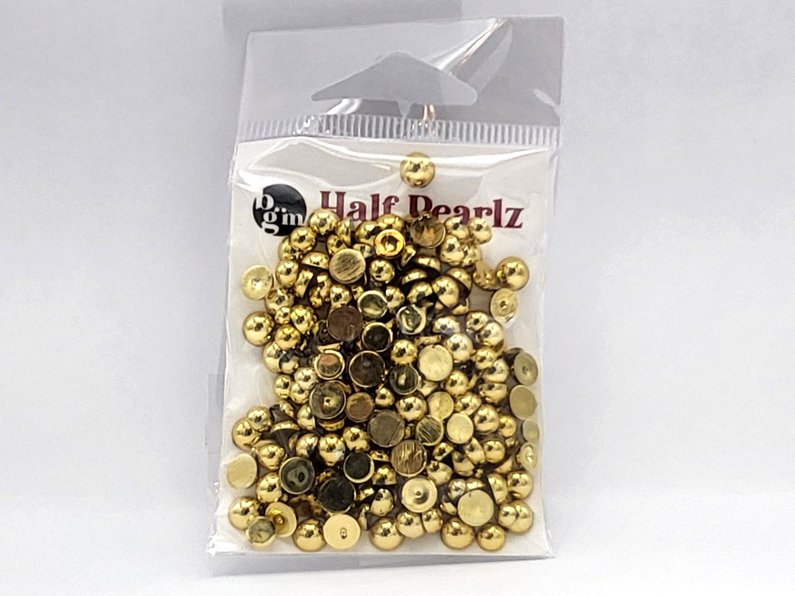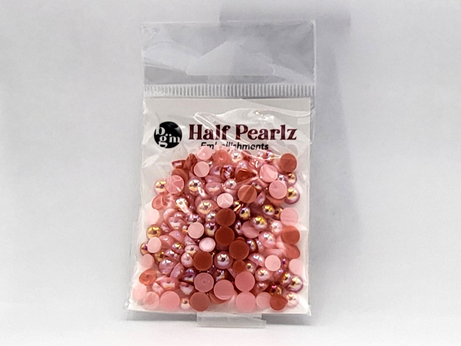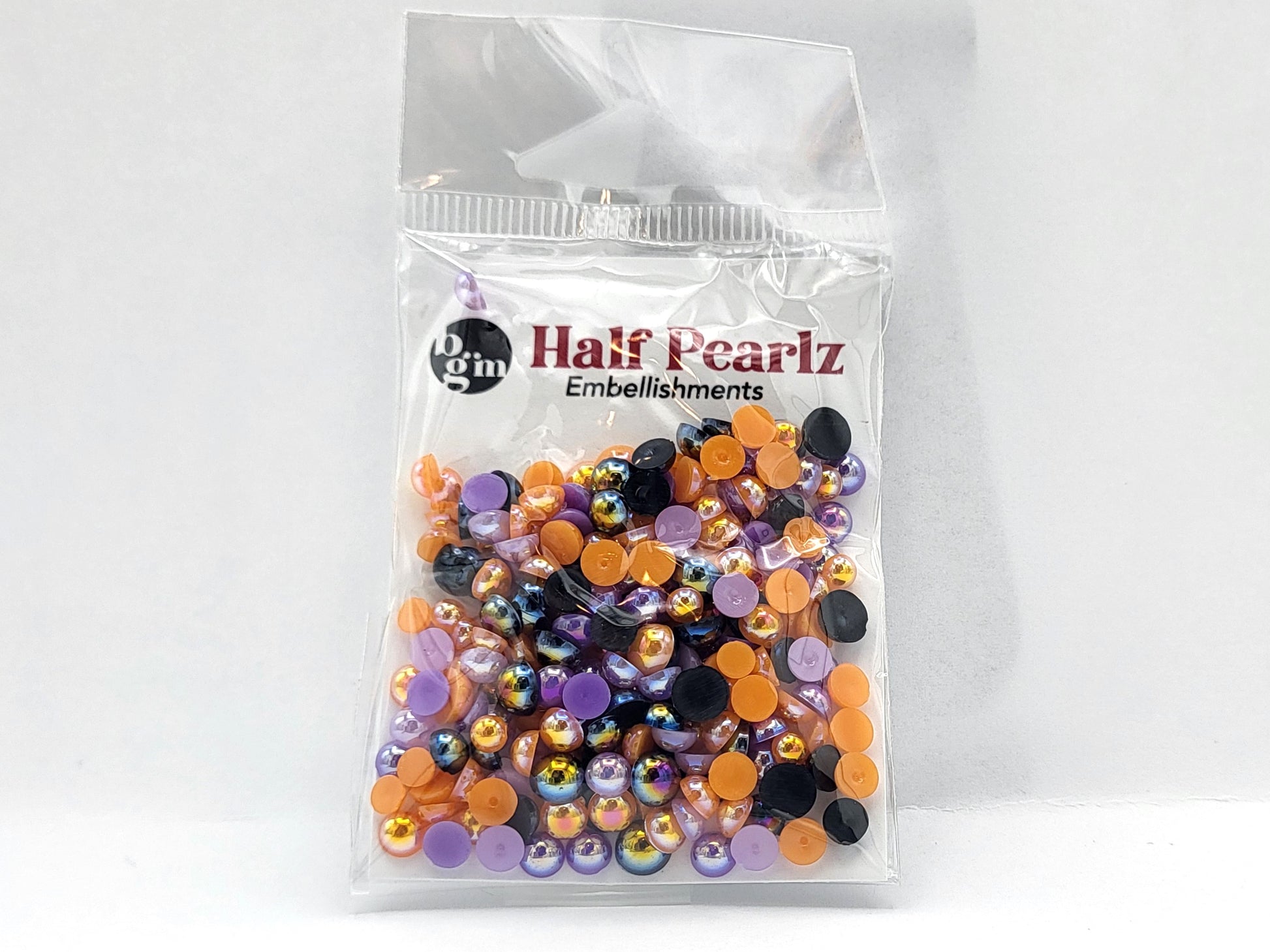 Buttons Galore and More Flat Back Half Round Pearls in an iridescent AB (Aurora Borealis) finish with a mix of three sizes in 4mm, 5mm, and 6mm. These craft embellishments are flat on the back and have a smooth round top. Add to your cards, scrapbooks, and more with a touch of glue to give your project a little dimensional pizzazz.