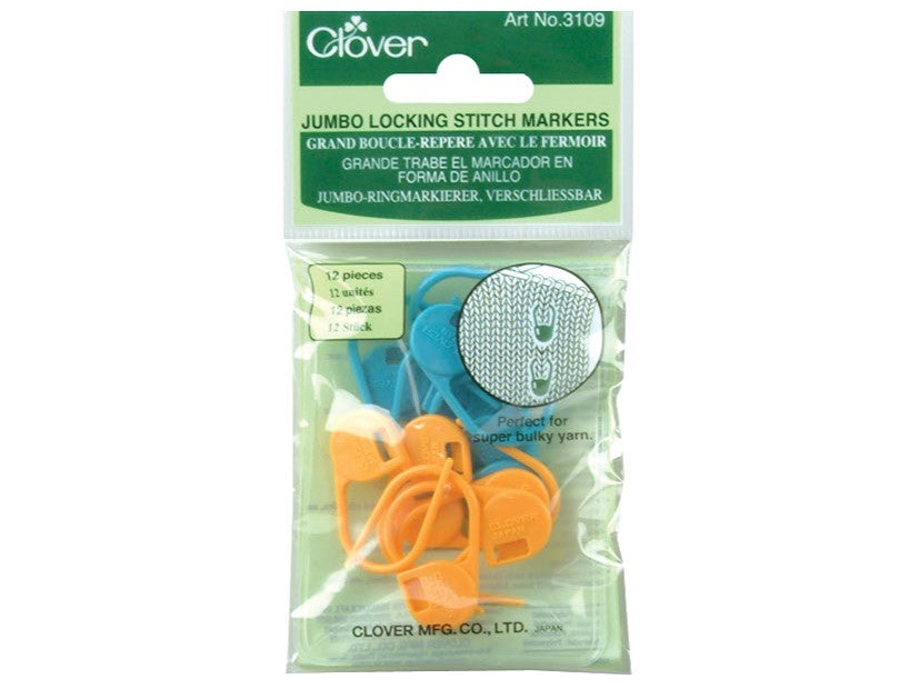 Clover Jumbo Locking Stitch Markers for Knitting and Crochet, Plastic Safety Pins, 12 count