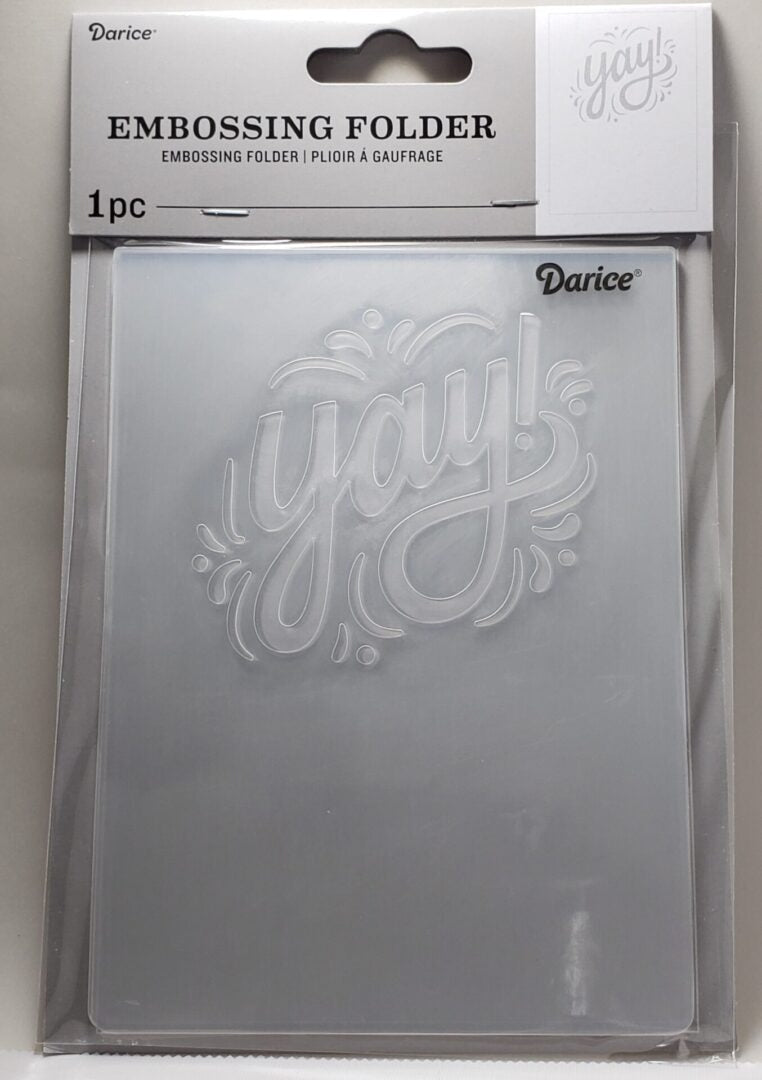 Darice Embossing Folder, "YAY", is sized for A2 cards and measures approximately 4.25" x 5.75".