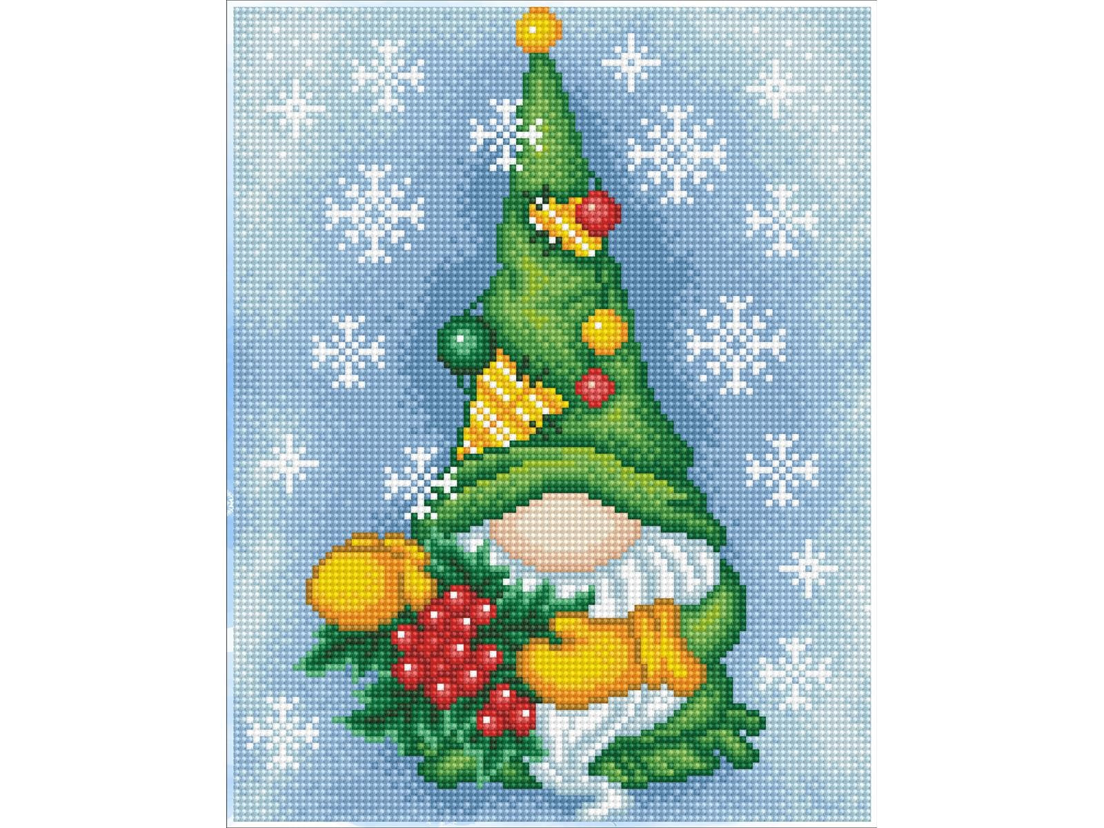 Diamond Art Kit 11x14" Intermediate Full-drill Holiday Green Gnome