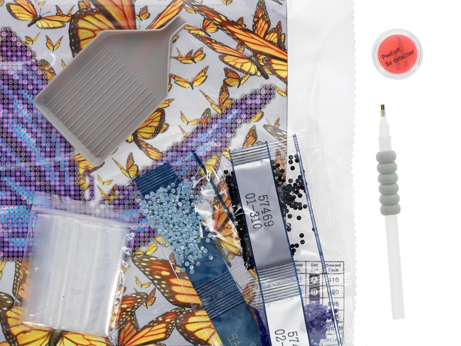 Start diamond painting with Diamond Art by Leisure Arts, powered by Diamond Dotz! Paint with beautiful 13 faceted diamonds onto high quality color printed fabric. This beautiful blue butterfly is fluttering among the yellow butterflies in the background.