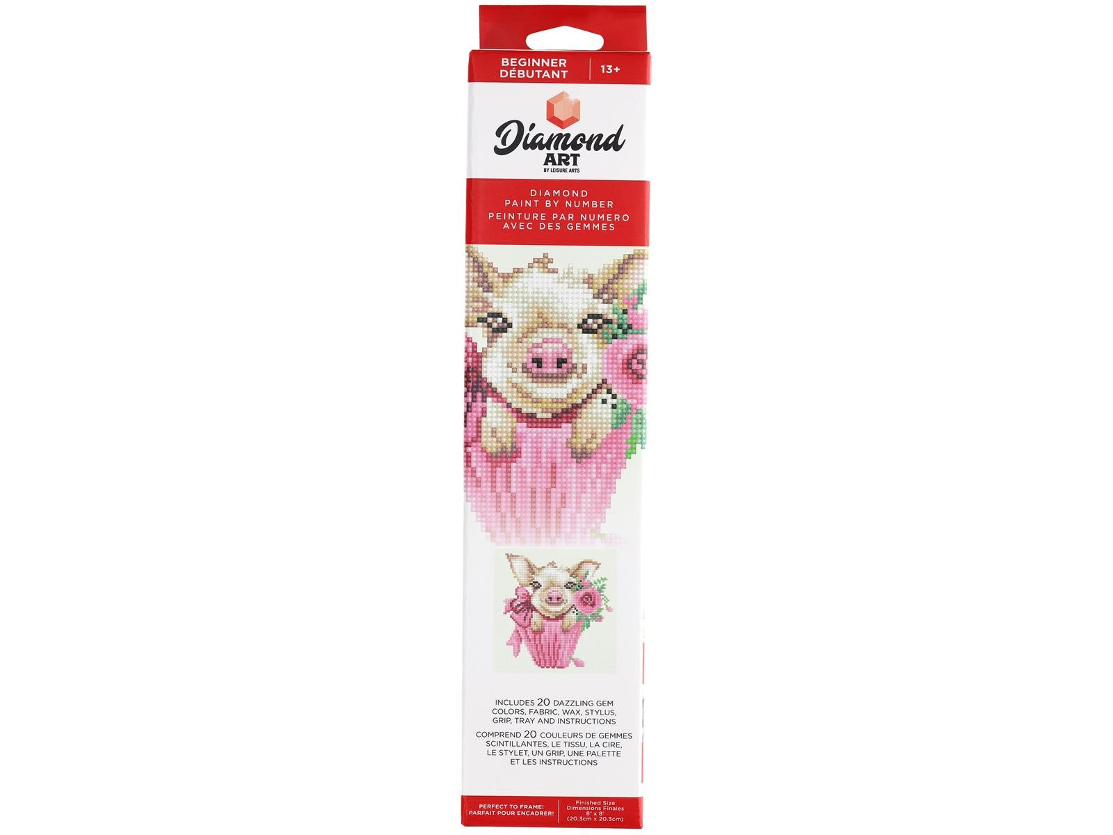 Start diamond painting with Diamond Art by Leisure Arts, powered by Diamond Dotz! Paint with beautiful 13 faceted diamonds onto high quality color printed fabric. Fall in love with this adorable pig in a basket on a printed green background.