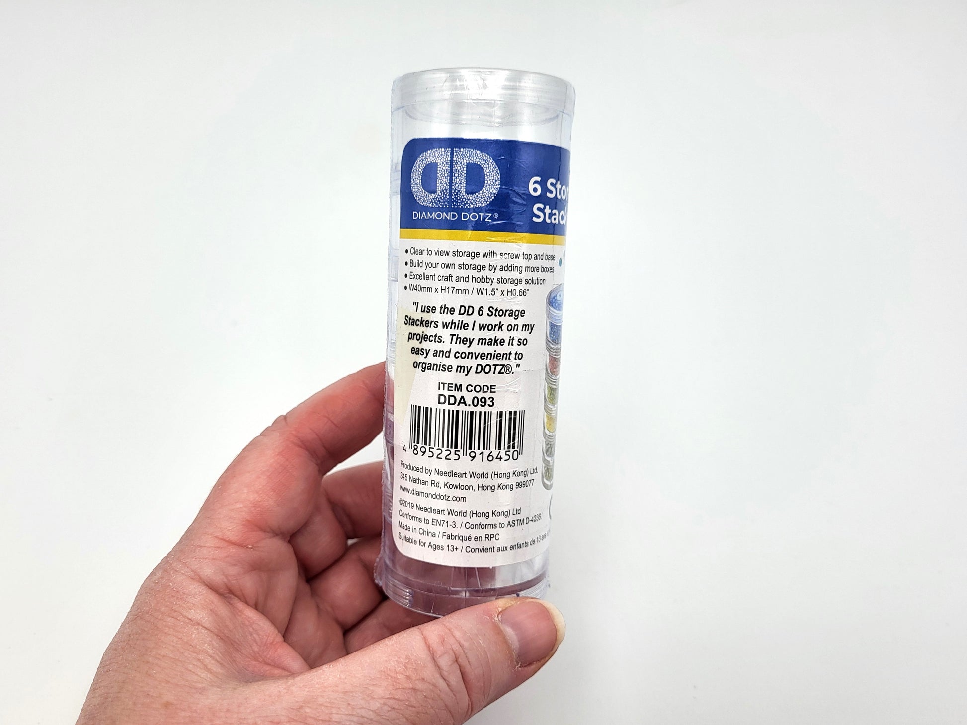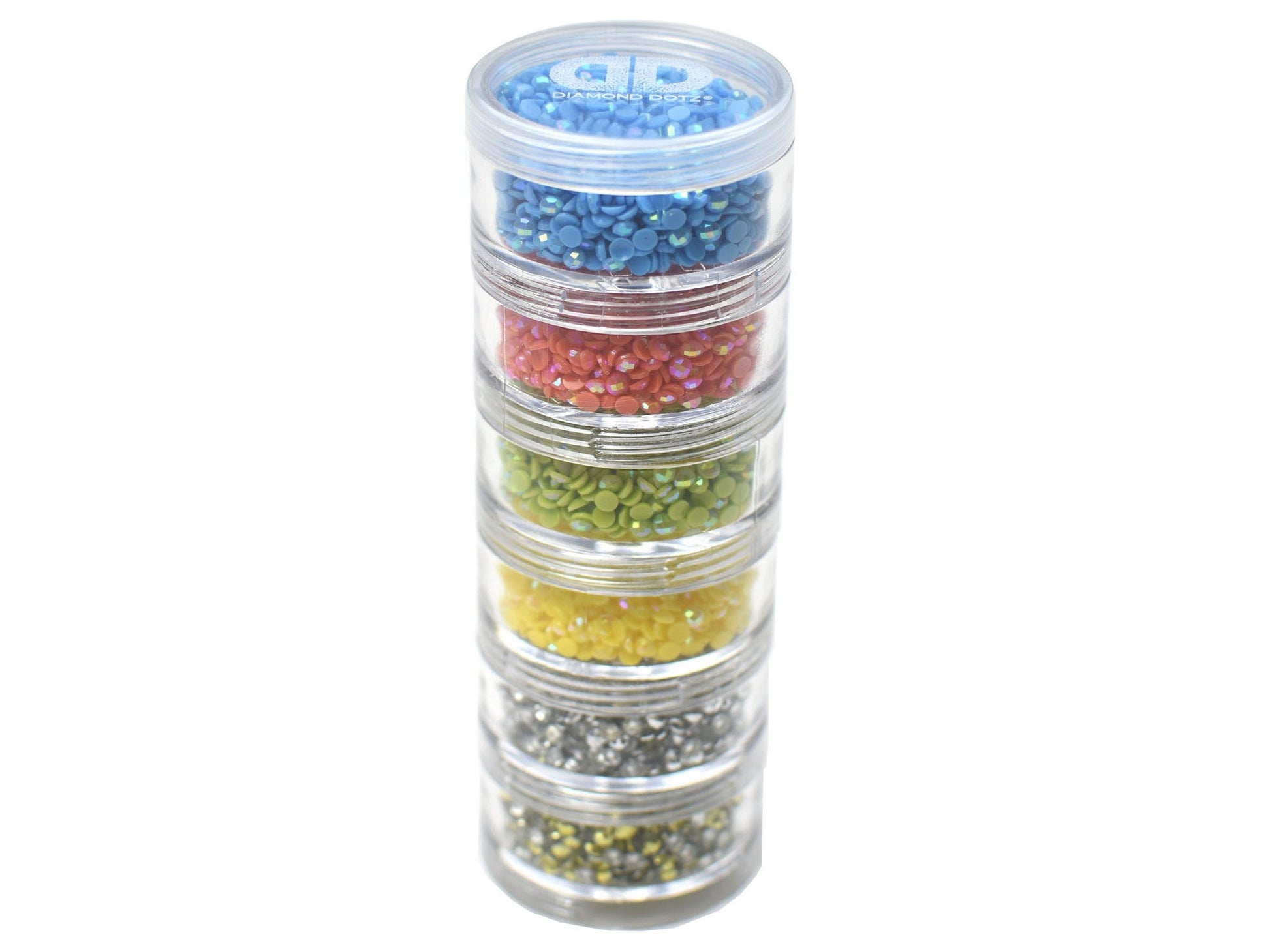 DIAMOND DOTZ 6 Tier Twist Stackable Cylinders. Perfect for storing you DOTZ colors. These twist together to make a space saving stack. Great for travel. This package contains one 6 tier Twist Stackable Cylinders.