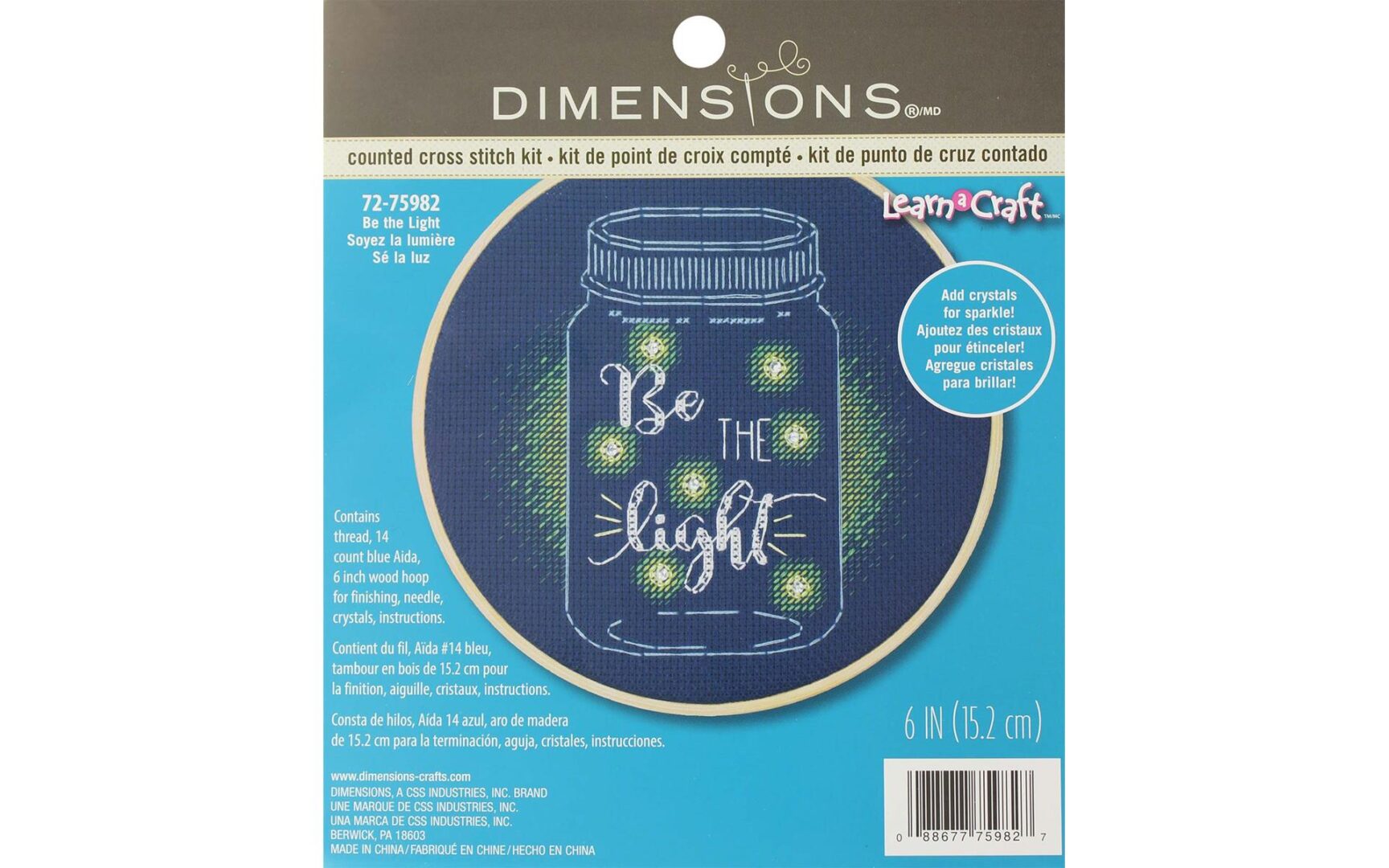 Dimensions Cross Stitch Kits contain everything you need to create a beautiful piece of stitchery art. Cross stitch can be done on even-weave fabric following a print-out grid of the pattern-called counted cross stitch, or on pre-printed fabric-called stamped cross stitch. 6" Be The Light- From the Learn A Craft Collection.