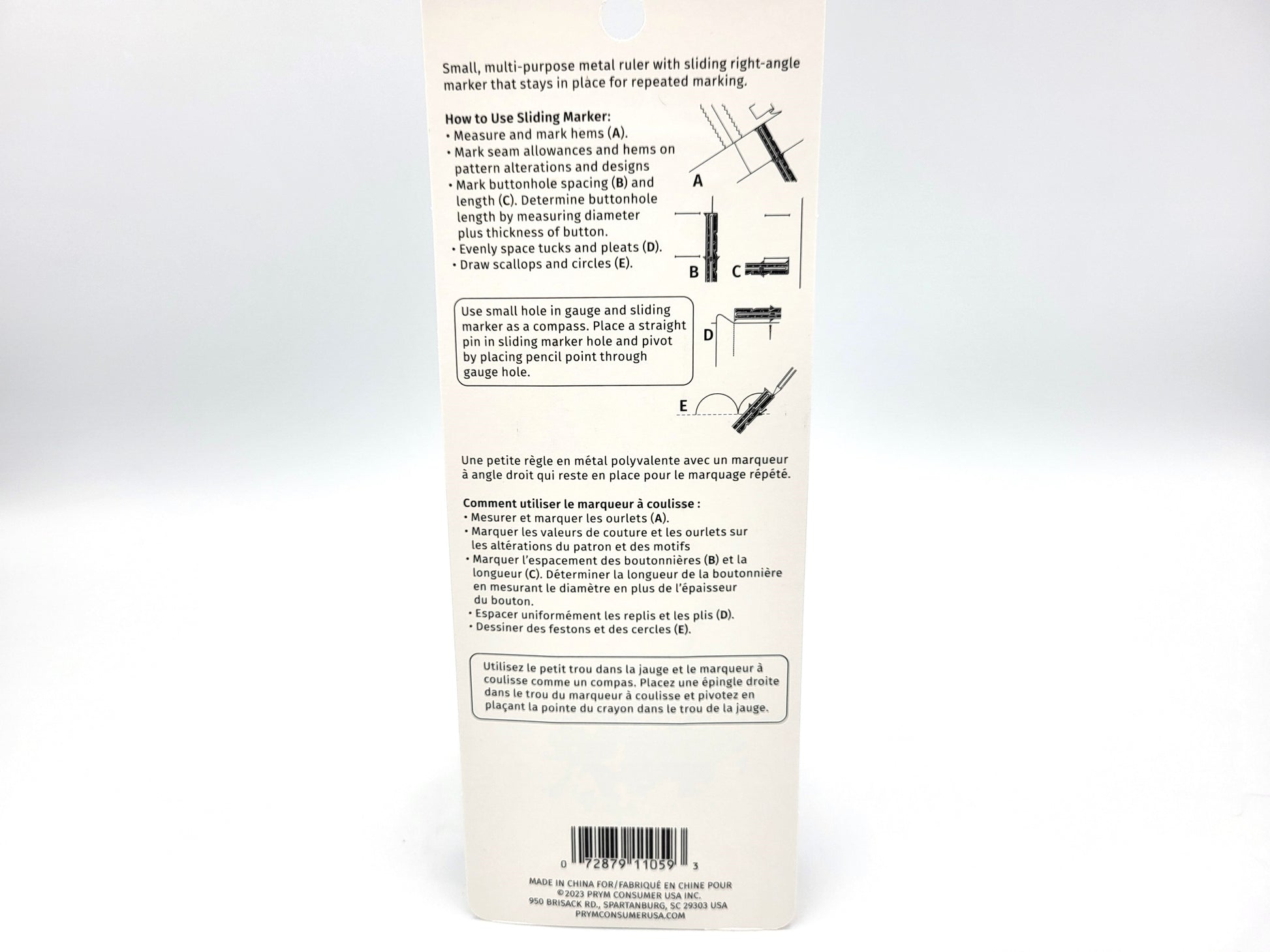 Measure and mark, hems, seam allowances, tucks and buttons holes with this handy little tool.