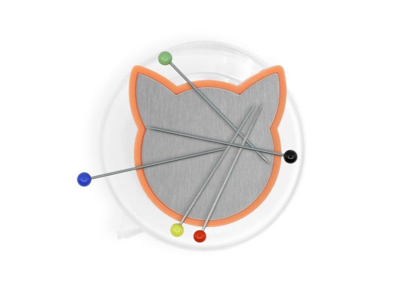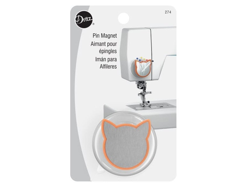 The Dritz magnetic pin holder features a cat shaped surface with a suction cup base for use on the front of your sewing machine or any smooth work surface. Your pins and needles are always within close reach as you work. The cat shape is sure to bring a smile to the cat loving sewist, quilter and crafter. The plastic-encased magnet holds pins and needles securely and has an attractive stainless surface. The 1.75 inch clear suction cup on the base of the magnet can be applied to any clean, smooth surface. Pins and needles are always within close reach when attached to the magnet. The charming cat shaped head will delight cat loving sewists, quilters and crafters.