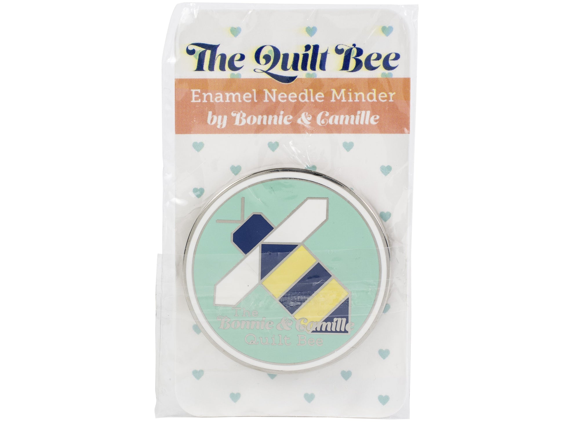 The front of the needle minder is a pretty enamel charm and you would put the magnet on the back side of your project to keep securely in place.