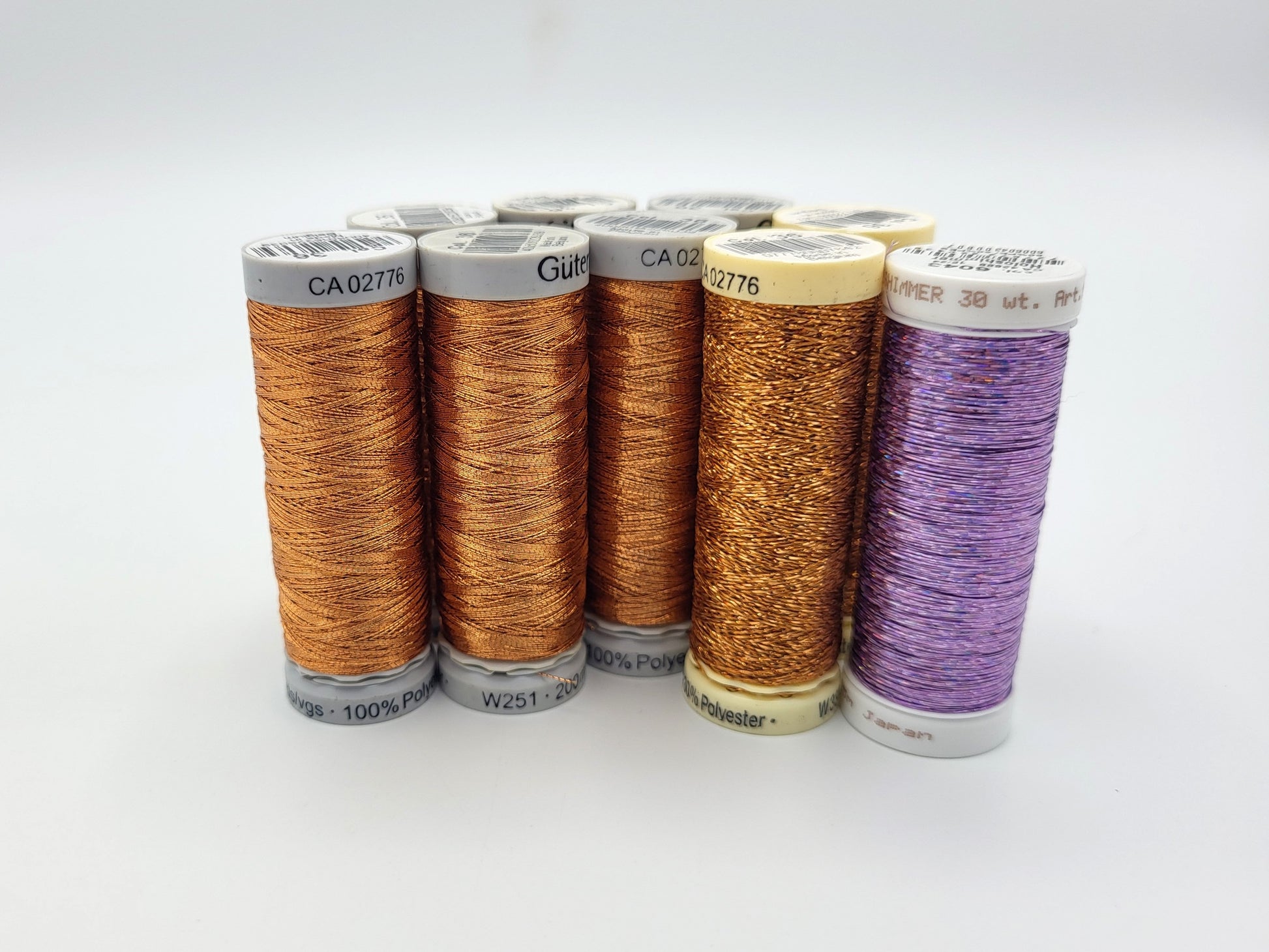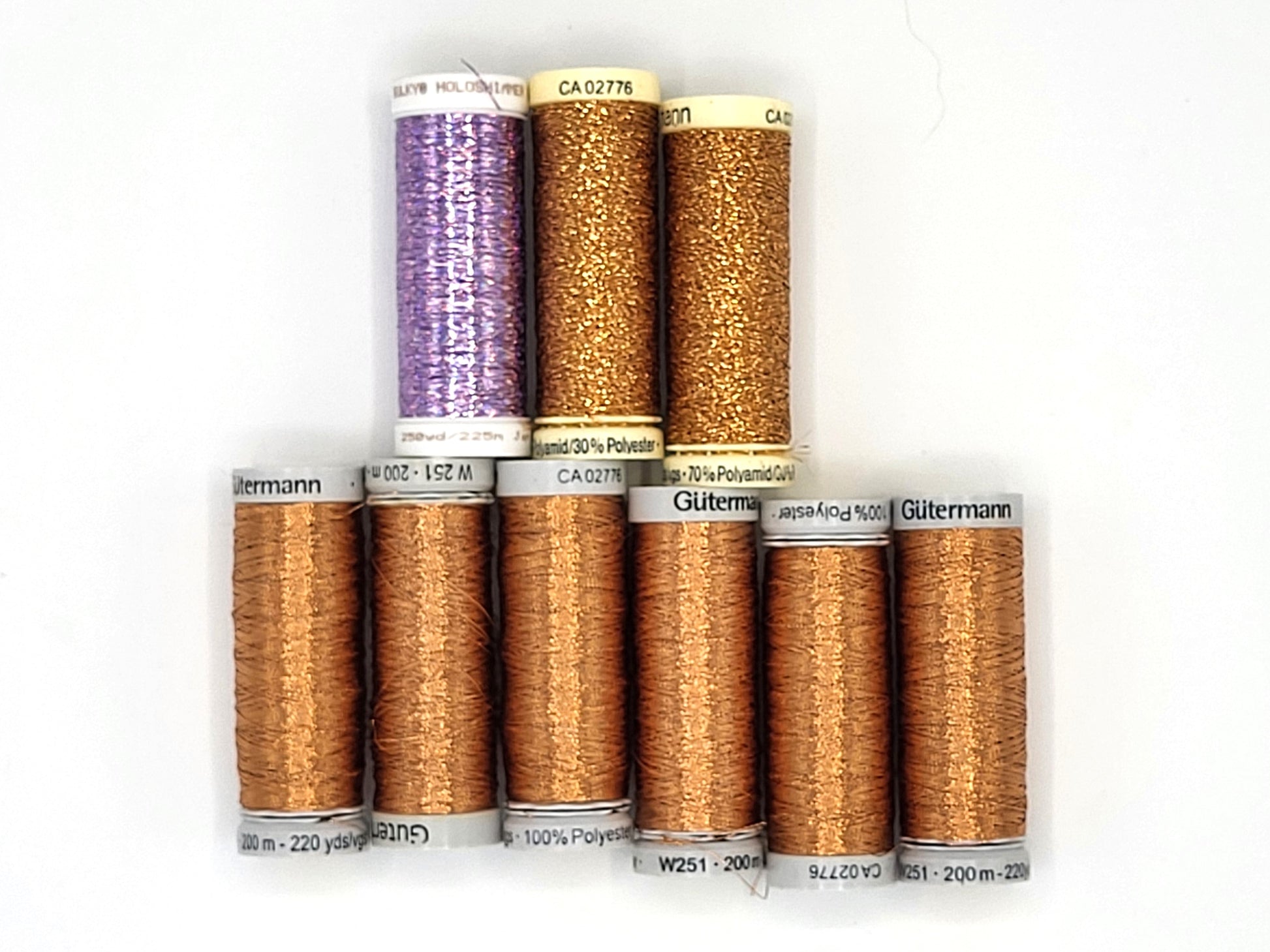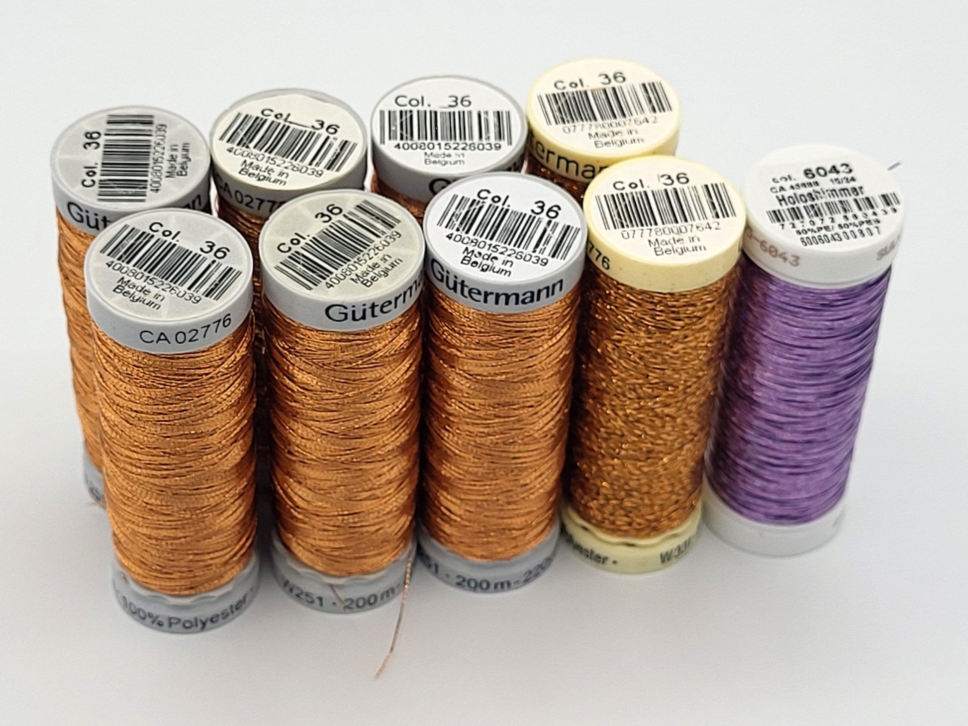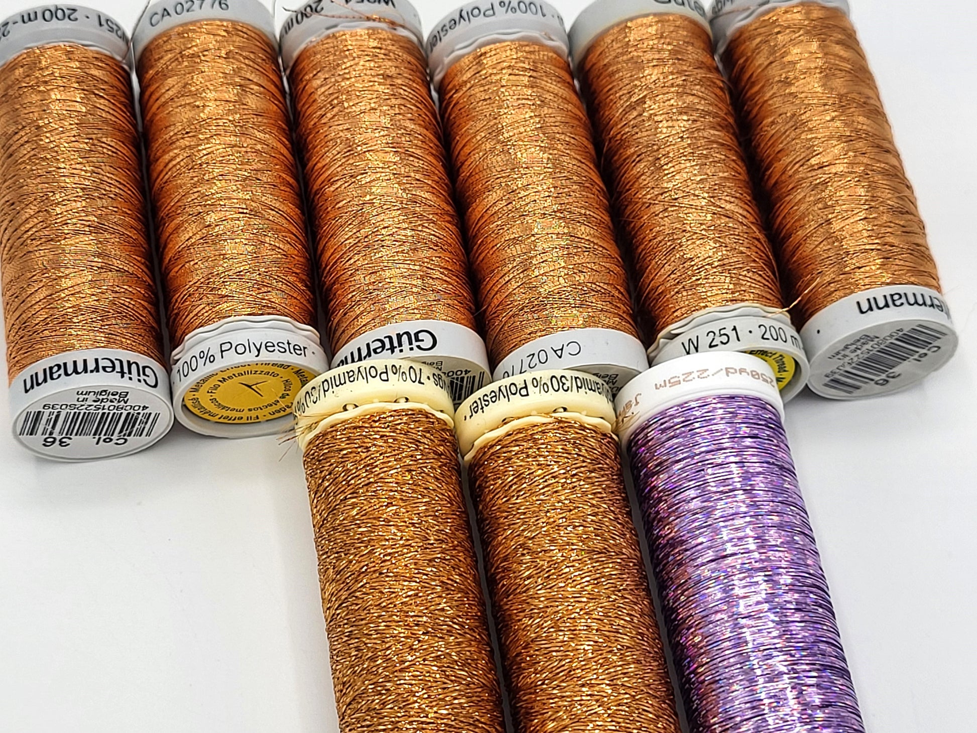Metallic Thread lot, Gutermann and Sulky, 9 spools gold and holoshimmer
