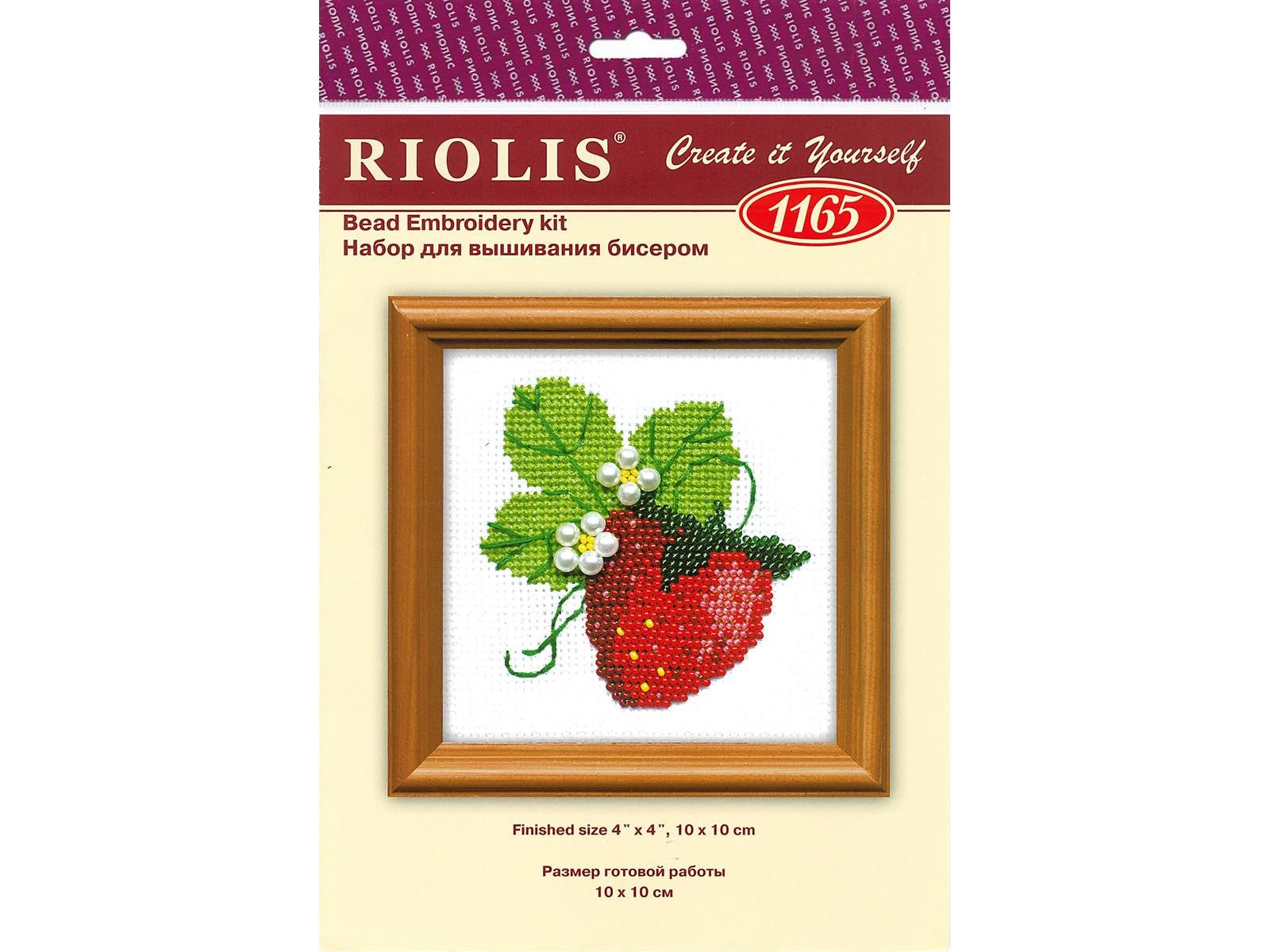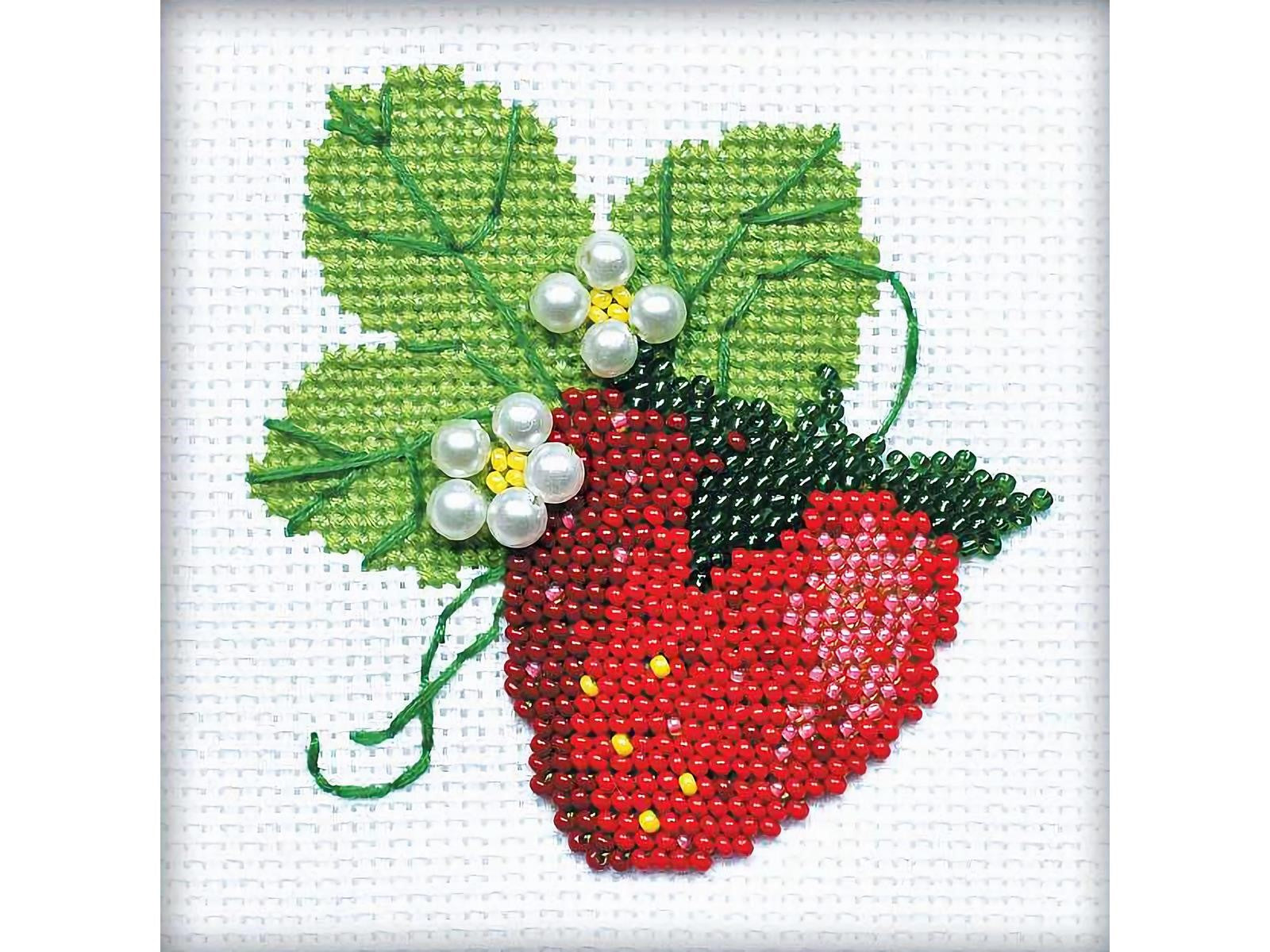 Riolis Beaded Cross Stitch Kit 4" x 4", 14ct, Garden Strawberries
