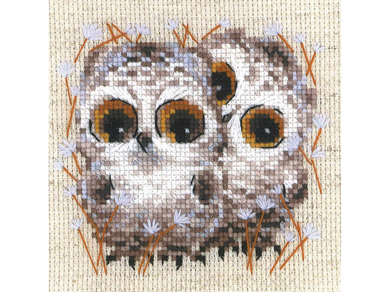 Riolis Cross Stitch Kit 5" x 5", 14ct, Little Owls