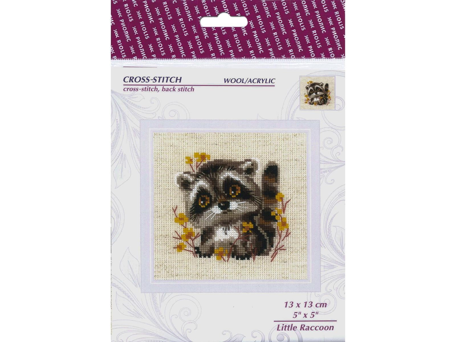 Riolis Cross Stitch Kit 5" x 5", 14ct, Little Raccoon