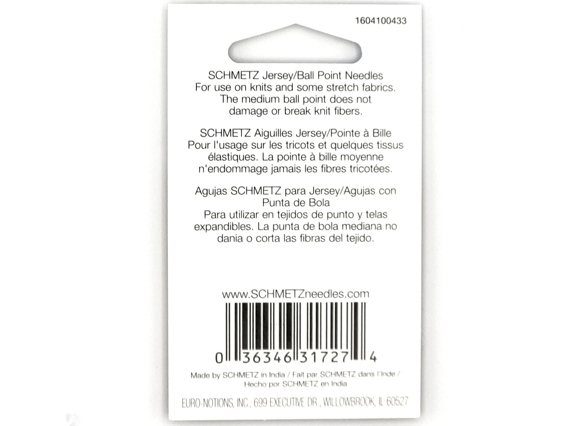 Schmetz Ball Point Jersey Machine Needles - 5pc - Sizes 10/70, 12/80, and 14/90