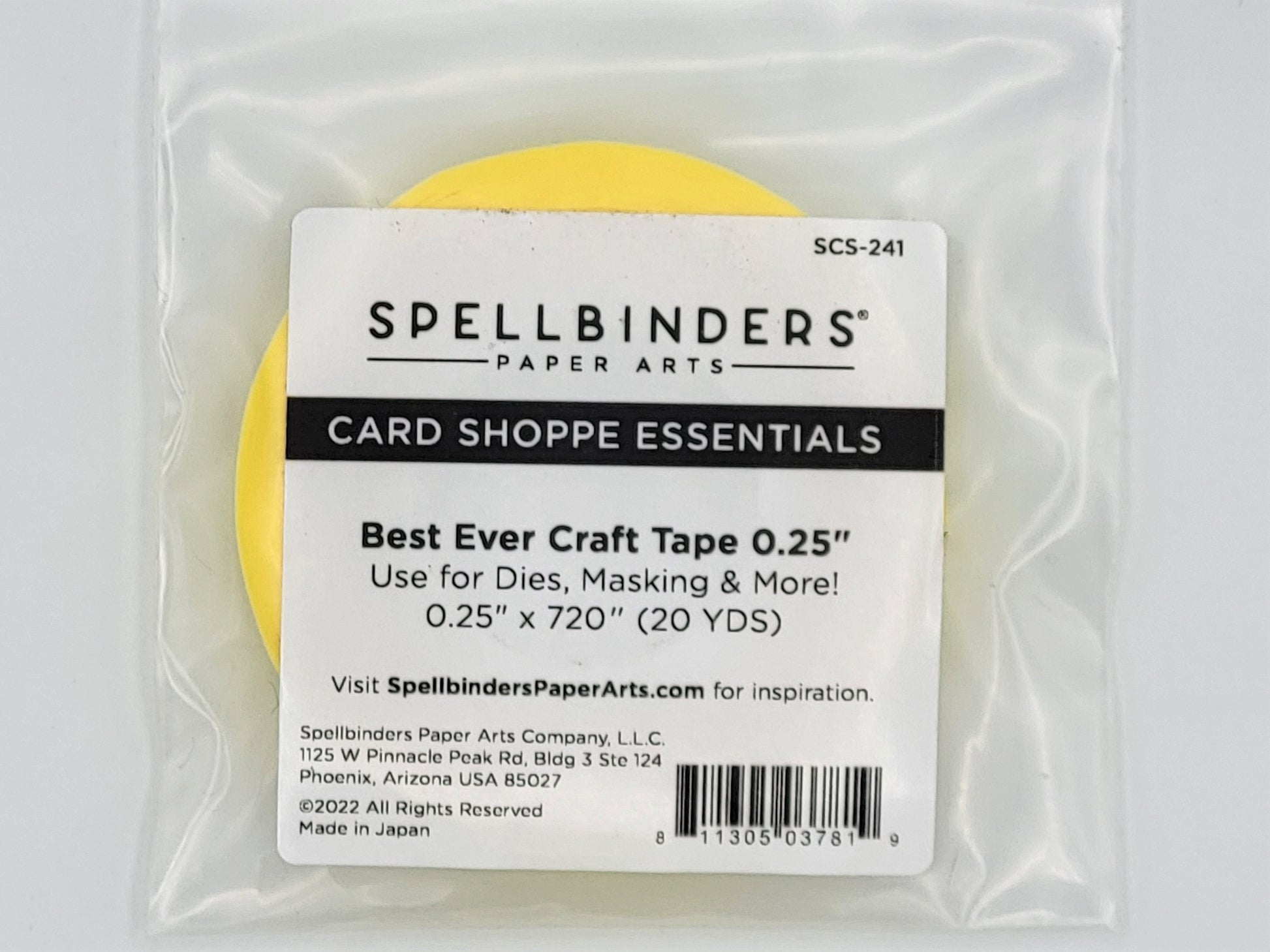 The Best Ever Craft Tape is a 20-yard roll of 0.25 inch width masking tape. It is strong enough to secure intricate dies together when die-cutting to prevent shifting. It does not leave any residue on dies and cardstock after use. The extra thin tape is perfect for masking techniques such as paints, inks and more.
