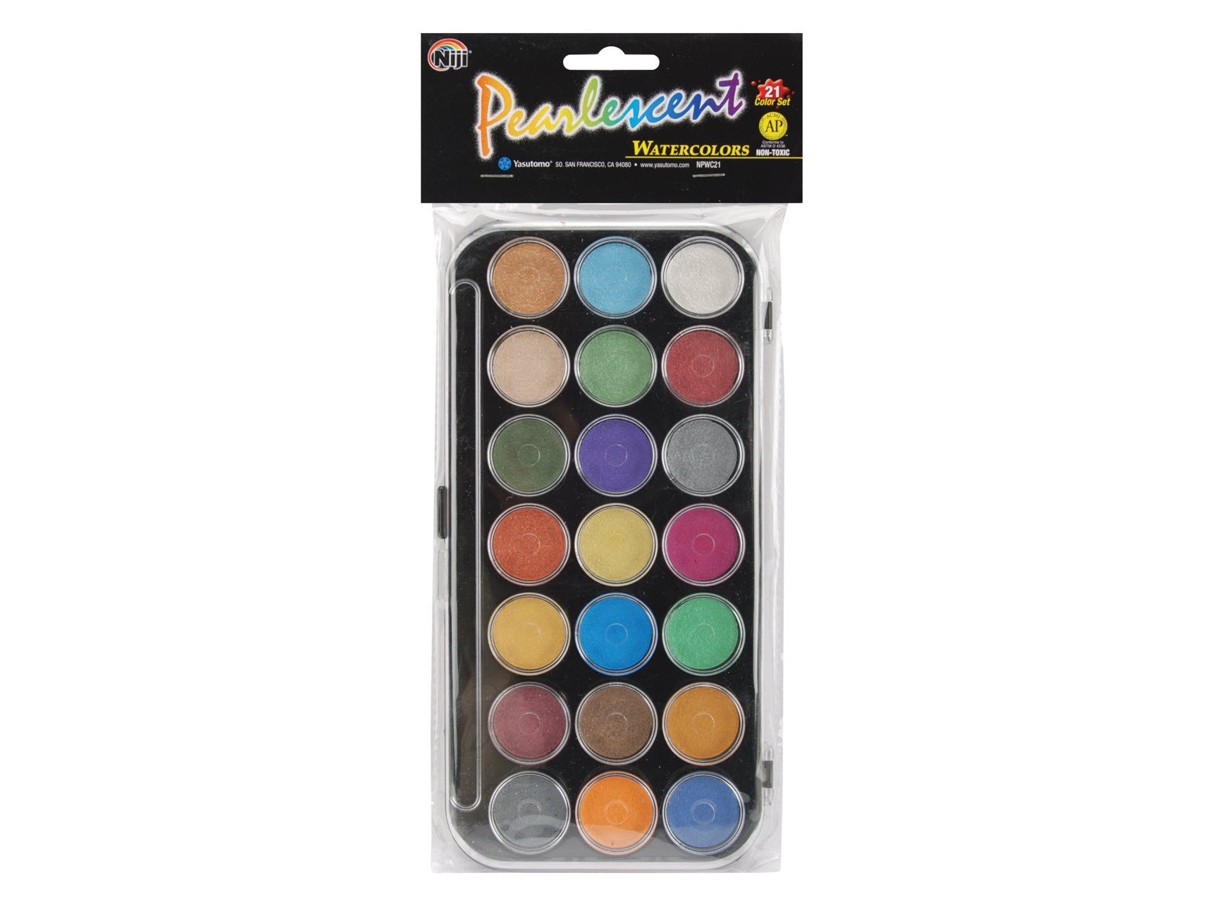 The finest quality watercolors used by Japan's watercolor and Sumi e-painters. Pearlescent Watercolor Set with 21 colors. colorfast colors in a reusable plastic container. They will add dimension and sparkle to all your paper crafts. Can be used alone or with other watercolors. Great for painting, stamping, greeting cards and much more.